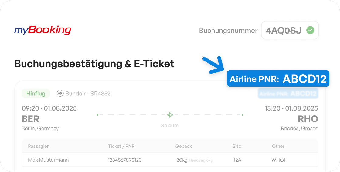 Mit Ihrer Airline PNR und Ihrem Nachnamen (auf der Buchungsbestätigung) können sie über www.mybooking-airtuerk.com Ihren Online Check-in durchführen.